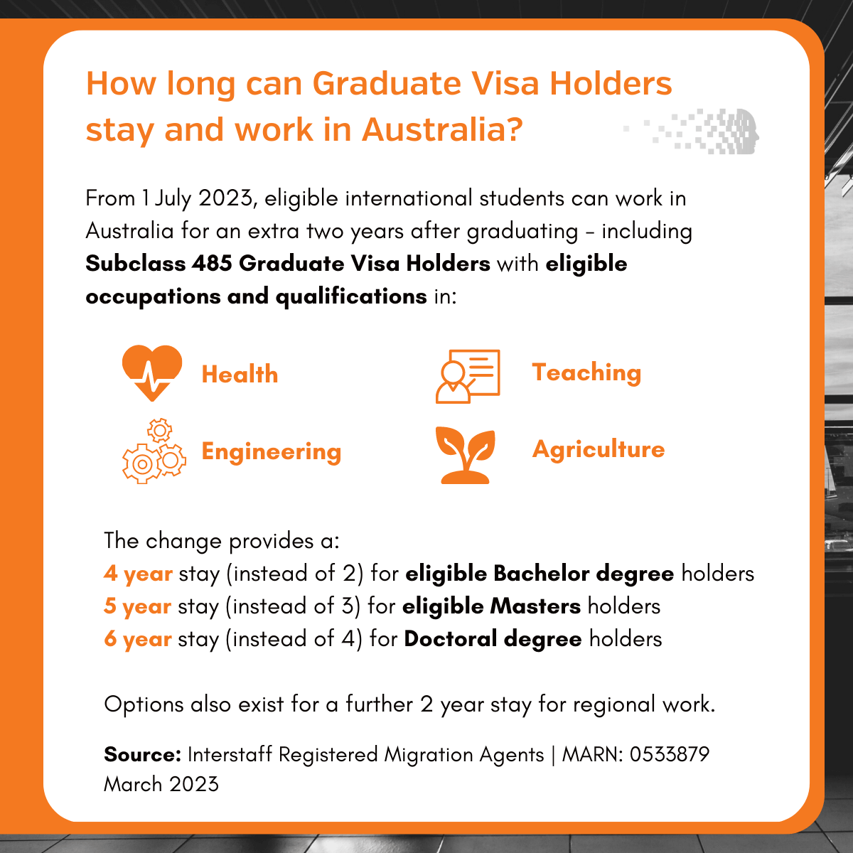 Certain Eligible Graduate Visa Holders can live and work in Australia for an extra 2 years