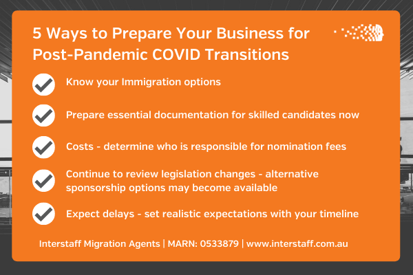Stay tuned for legislation changes ahead. Due to the impact COVID has had on the Australian economy, the current migration environment is expected to shift and the government has already announced some changes are coming.