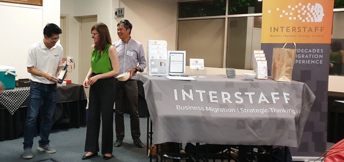 Above: Sheila presenting a lucky winner with the WA Singapore Business Connect Door Prize. Sheila also gave a presentation on Australia’s recent migration changes. In particular, Sheila addressed the way in which new regulations are making it more complex for new migrants seeking to live and work in Australia.
