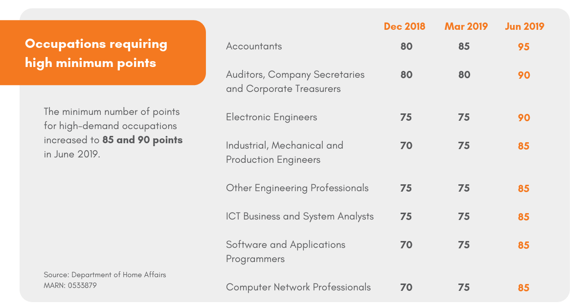 The bar has been raised even higher for skilled migrants requiring points for a 189 Visa invitation, particularly for high-demand occupations such as accountants, engineers and IT professionals. The 189 Visa is highly sought by skilled migrants because it provides permanent residence without the need for employer sponsorship. However, the visa process is very competitive as migrants must first meet several points-tested requirements to receive an invitation by the Government before applying for the visa.