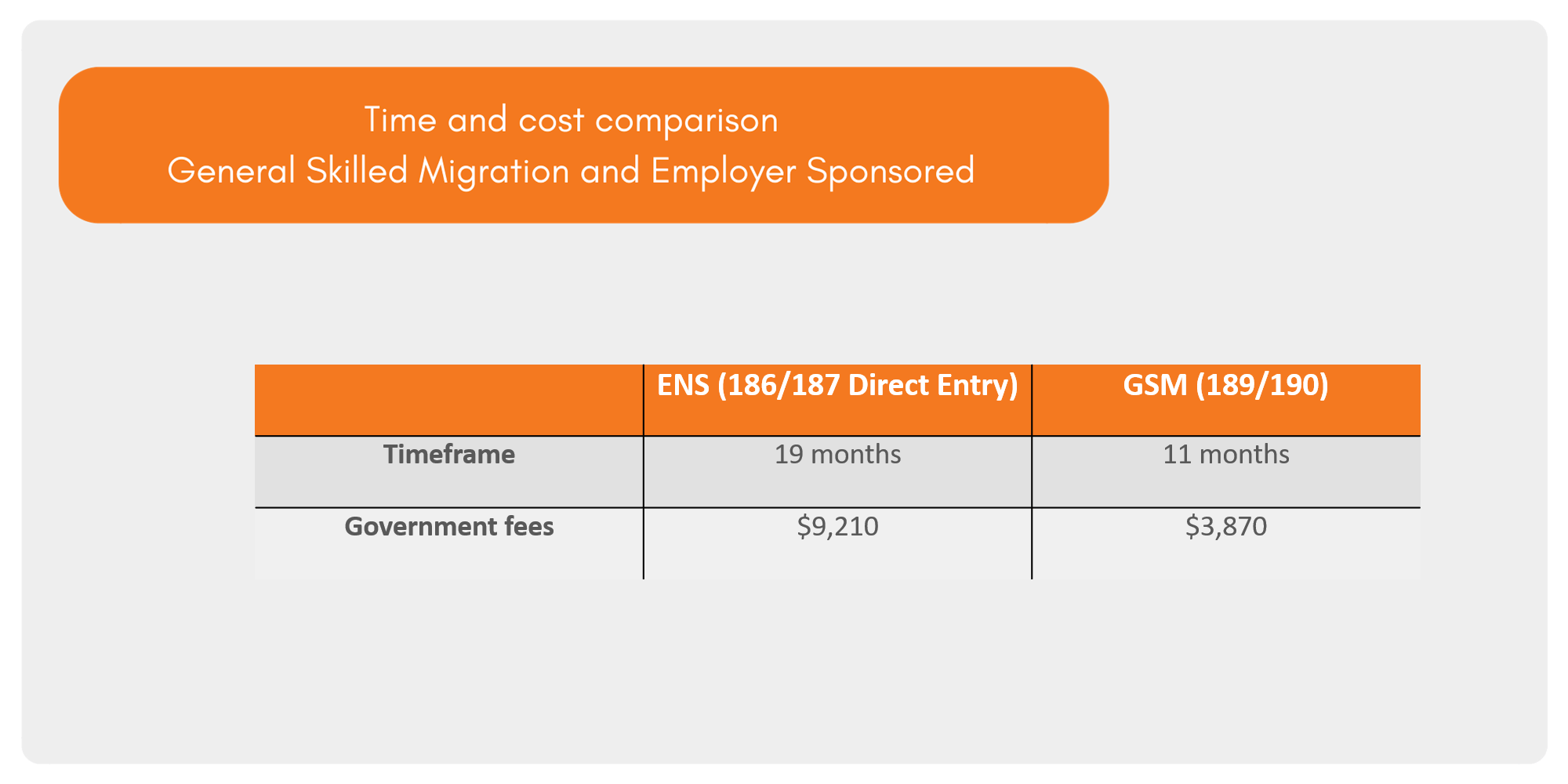 Comparison of General Skilled Migration vs 186/187 Permanent Residence Options for employees