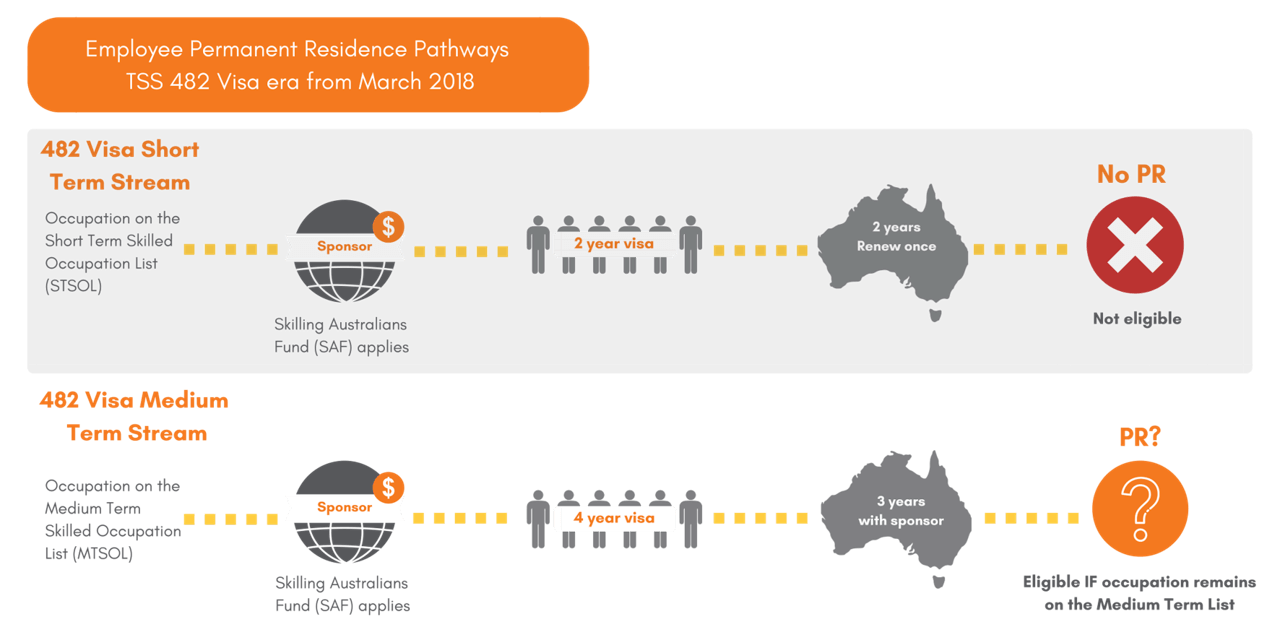 Only the Medium Term stream visa holders can access permanent residence, however even for those, changes to 186 and 187 employer-sponsored visa programs have extended the time that visa holders must work in their sponsor’s business from 2 years to 3 years and introduces a requirement for their occupation to remain on the list at the end of that 3 year period. This introduces a new level of uncertainty and planning limitations as the occupation lists change twice each year.