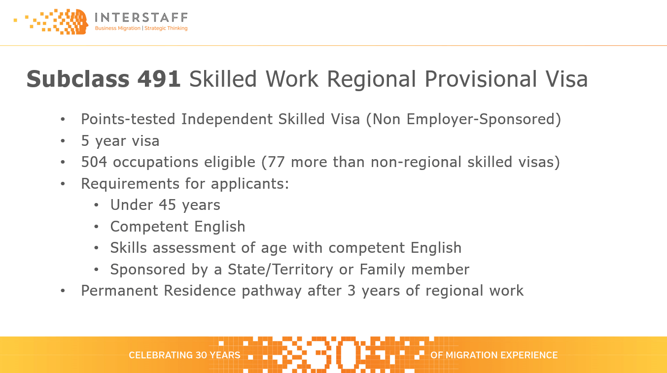 The Subclass 491 Skilled Work Regional Provisional Visa