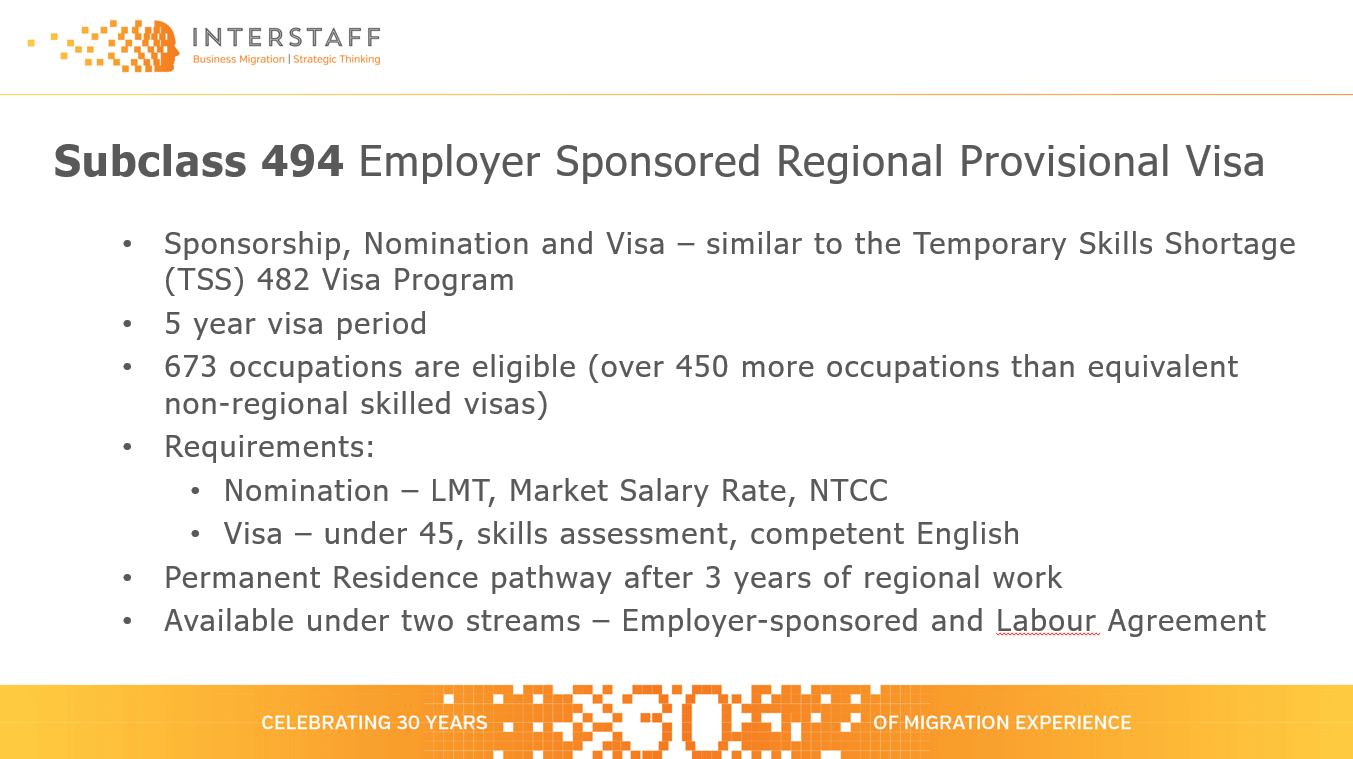 The Subclass 494 Employer Sponsored Regional Provisional Visa